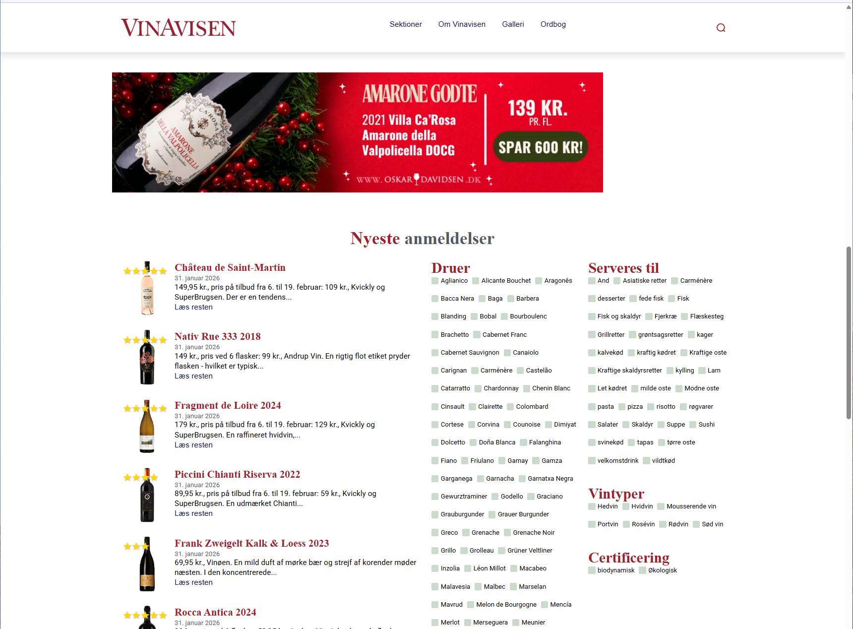 VinAvisen.dk har skrevet om og anmeldt vin siden før år 2000, og i mange år har designet ikke ændret sig. Men i 2024 indgik jeg et samarbejde med Mariette Tiedemann fra VinAvisen og en total modernisering ag den gamle avis.